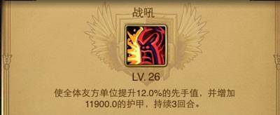 战吼!!!斯温的王牌。满级高达1W7+的护甲加成,而且是全体队员释放。(实际测试物理减伤非常明显接近百分之45)