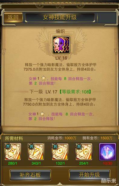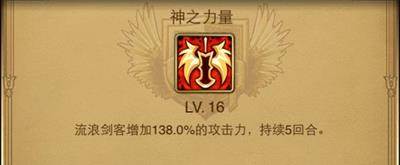 神之力量提高斯温5回合攻击百分比,关键第一回合攻击前释放,让斯温拥有足够的爆发。