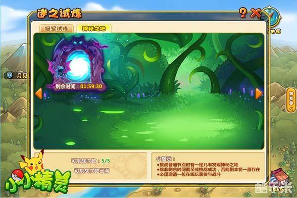 萌乐网《小小精灵》中,玩家通关节点后,对节点进行扫荡时有一定几率发现各类神秘之地。每个玩家每天可以进入五次神秘之地,每个神秘之地都有自己的存在时间限制,所以发现神秘之地后一定要及时进入哦!玩家之间必须组队进入神秘之地,挑战成功后将获得丰厚的道具奖励。