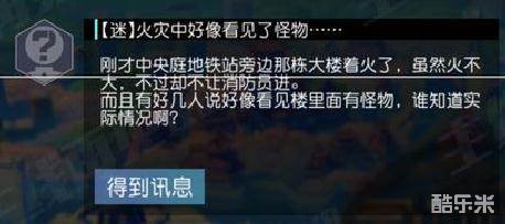 4、巡查【中央庭】,触发支线——火灾中的怪物