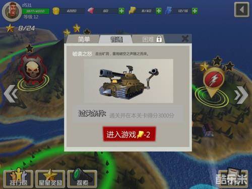 难度和奖励都要比同一张地图内的关卡更难也更丰厚。