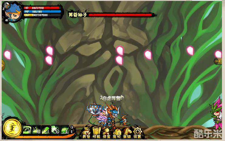 开场半月旋打到最右边放毒阵开如意放娃娃两个木魔,掉血超快,接下来你就和他耗,汲血之缚有很明显的动作,大约有一秒的时间你可以跳起躲避,不要被这个击到,否则会给BOSS回血,你还会暂时不能动,接下来你就被BOSS吊打了,天女撒花你能躲就躲,不能躲就硬挨,这伤害不高,蔓藤乱舞可以用二段跳躲避,你要争取时间回魔,有如意就用,用如意加个毒阵可以牵制她,随后半月旋1—2次,跑尽量别被打到吧,关键就是回魔和输出,当她差不多只剩—10%的血,你的魔也回的差不多,而且她已经放完汲血之缚的时候,你就放个巫毒,再放个木魔,跑,他差不多就死了,没死的话是你输出问题,你就在等汲血之缚放完,开如意跑过去毒阵半月旋,就死了。另外,最好要看看BOSS血量能不能一个娃娃一个木魔打死,毕竟他最后的夺命飞花很痛滴。
