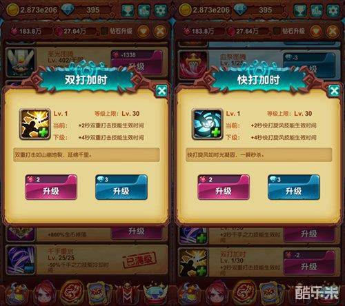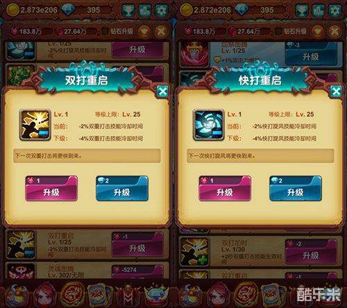 首先可以为技能增幅的图腾分为两大种类,一种是可以增加技能持续时间的,比如“快打加时图腾”“双打加时图腾”。当你拥有一个满级的“快打重启图腾”时,你的技能“快打旋风”持续时间从原来的20s增加到30s时,我们在闯关中的优势可是很大的,试想一下,本身你闯关只有1e的伤害,使用完技能之后攻击力会变成1.5e而且持续时间很长,这就让你有了一次冲刺的机会,可以利用技能释放的合理时间,闯过阻挡我们的难关!