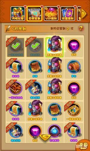 福利活动:开服登录奖励以及签到活动都免费可以拿10资质橙色英雄或灵魂,以下图日常签到为例,签到3天就可以得到25个恶魔小丑灵魂(40个灵魂可以召唤完整英雄)