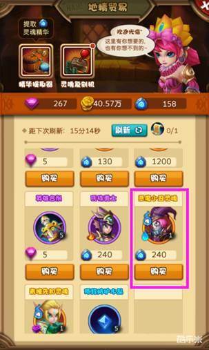 地精商店:还不够40个?不要急,地精商店帮到你。把从召唤之门或者斗兽场、竞技场兑换商店拿到的不想要的英雄或灵魂在地精商店提取成灵魂精华,用灵魂精华兑换想要的灵魂吧!【tips:提取4星英雄灵魂可以得到大量的灵魂精华】