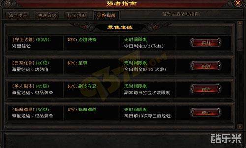 通过强者指南可查看当前很划算的提升战斗力方式和快速升级、打宝攻略。