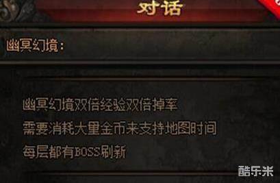 《开天战神》的幽冥幻境是一个有着双倍经验双倍掉落的地图,听起来很诱人吧,不过同时也需要消耗大量的金币来支持地图时间,没进入一层需要消耗100W金币,但是BOSS的掉落也是相当丰厚的呢,包括全等级的装备以及各种极品道具,所以十分值得一玩喔!
