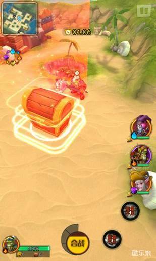 凑齐地图碎片之后,就可以合成整张藏宝图了。进入地图后在四个角落可以看到若干个门,只有打掉中间的怪物之后,门就会开启,进入任意一个后,回到地图中间可以看到宝箱或者BOSS,这时候其他的门又会重新关闭,如此反复即可,只有找对宝箱才能得到更多的奖励。