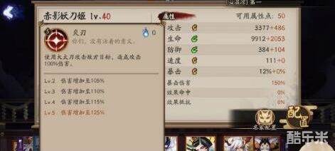 首先是赤影妖刀姬的普攻,那普攻没什么看头的,我们就来看看后方妖刀姬的属性,这个攻击的属性可是比SP的炼狱茨木童子都高了几十攻击出来,然后就是速度和暴击,这个面板看起来是十分暴力的一个面板呀!