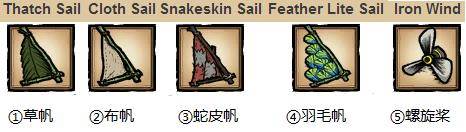 ③蛇皮帆:耐久4天,增加船速25%,需要二本