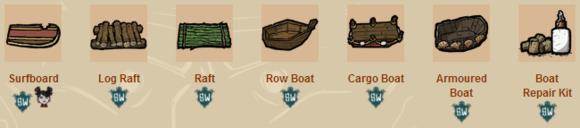 ③木船:耐久250,速度6,有船上装备栏,需要一本