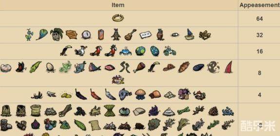 这里要解释一下,游戏中一天的时钟被划分为16格,每格大概是30秒,从图中可以看出,供奉一只贱贱的螃蟹可以延缓一天的爆发时间,而供奉黑曜石效果则与此相反。所以如果你先后加入一只螃蟹和一块黑曜石,那么你除了被扣6点血之外不会获得任何效果。
