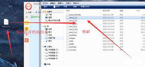 大家看这个时候我吧东西拿走了,也就是说洞穴下面的箱子没有我的东西,这个时候就需要刚才保存的存档了,吧刚才保存的存档复制粘贴到你的存档里面,也就是说你的洞穴存档已经还原你没拿走东西时候的样子了,这个时候你在下地穴东西就还在
