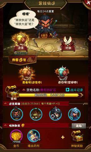 运货的操作流程:刷新货物的品质→选择运货的英雄(不会影响你用运货的英雄打副本,也不与公会任务的英雄冲突)→点击运货→4个小时后回来领奖。