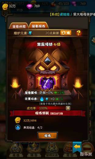 有什么用。打开铁匠铺,里面有一个装备熔炼,装备熔炼就是给装备增加额外的属性。一种属性是这件装备的百分比属性加成;另一种属性是增加元素攻击,攻击的时候有伤害加成。注意只有英雄和装备属性相同的时候才能被激活,所以装备一定要穿在对的英雄身上。