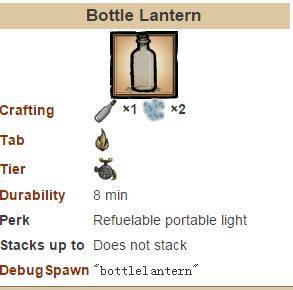 值得一提的是这个发光瓶,伟大的发光瓶有一个BUG,当这个瓶子在地上是0%耐久度后仍然会发光,并且你下线再上他还是发光,永久的光源~
