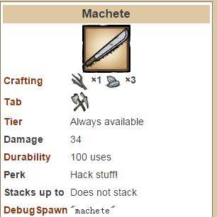 普通砍刀:能砍竹子和那个什么vine的草,伤害是34点每次