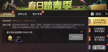 刺激战场邀女神战斗活动怎么玩?刺激战场手游中邀女神战斗是女神节活动玩法之一,玩家完成任务后可以领取金币和檀金舞会假面奖励。很多玩家不知道邀女神战斗活动的玩法,下面小编就来介绍下吧。
