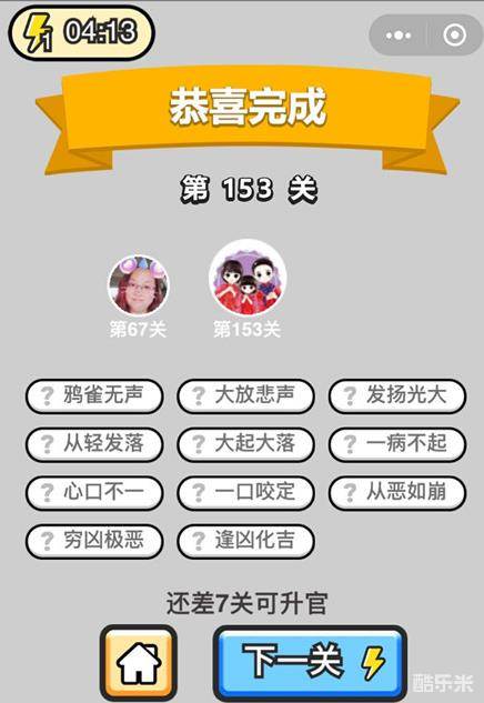 《成语升官记》举人第153关答案: