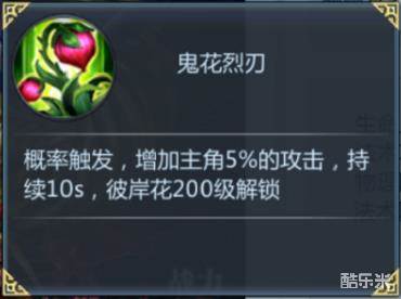 河神》中一个养成系统,可以通过消耗精气来进行升级,而因为彼岸花与玩家融为一体,逐渐成熟的彼岸花也会为玩家提升属性,而随着达到指定等级,还可以解锁彼岸花的特殊技能。