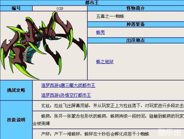 八戒:八戒同样建议携带瓶子,等都市王一出来,1-3个巨岩破伺候,之后都市王用出‘玄丝’我们立刻远离当前所在的位置使用土魔刺等都市王一下来就是放刺,之后都市王会用‘产卵’我们把都市王用战役怒吼吸过来,用巨岩破把卵打破,之后都市王用‘蛛网’我们只要在都市王的面前或者在都市王的背后就可以躲避了,其次,我们要是不幸被打中就可以用瓶子解除,之后再来1-3的土魔刺击败都市王。
