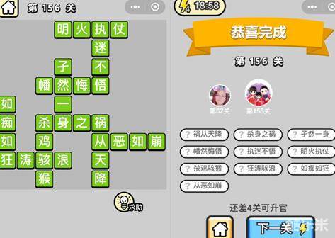 《成语升官记》举人第156关答案: