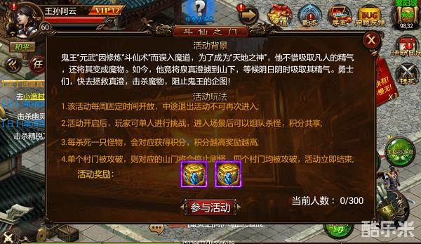 2.活动开启后,玩家可单人进行挑战,进入场景后可以组队杀怪,积分共享;