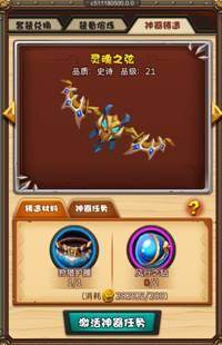 1、冒险等级达到50级,且玩家达到指定VIP等级时开启铁匠铺—神器铸造功能。