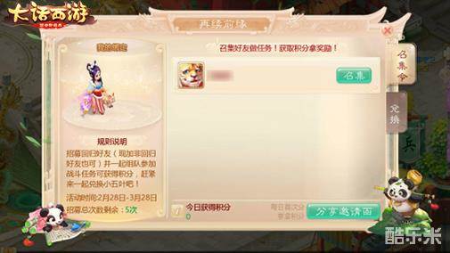 除了直接用春来积分进行兑换,大家也可以使用抽奖券抽取小五叶。玩家在活跃度达到150时就可获得抽奖券,春来积分也能兑换抽奖券,大家可以选择自己适合的方式,早些将可爱的熊猫兄妹领回家!