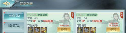 不同于日常任务的固定形式,游戏中的活动中除了每日活动是基本固定的安排以外,还有一些限时活动,可以为玩家提供活跃度,以及大量奖励与经验。这些内容是玩家在日常游戏中可以选做的,作为主支线任务、副本和每日任务以外的补充,可以体验到多种玩法。