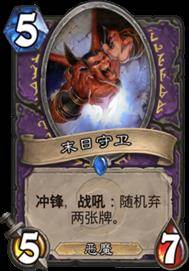 暴雪在这几次改版一样持续性地在帮弃牌术增加新卡,而且新的牌都是走可以控制的弃牌路线,末日的弃牌随机性和被特效招出来价值过高可能会让暴雪在设计新卡上很困难,虽然这张牌在任何情况下我都觉得没有过强,但是我想末日进荣誉室应该是想让上下差距(而且这个上下差距几乎完全是随机,无法控制)减小。