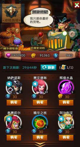 3、灵魂精华用于地精贸易公司中兑换灵魂、道具、英雄觉醒等。