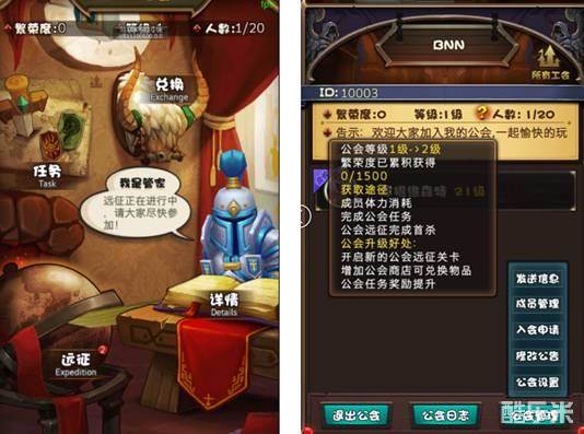 公会系统是《剑圣觉醒OL》中,玩家间交互的重要途径,有公会任务、公会远征、公会兑换等玩法。公会任务奖励金币、经验、天赋材料。