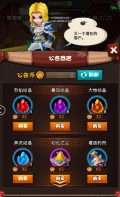 1、玩家通过各项活动,获得公会币,可于公会兑换处兑换各种游戏道具。