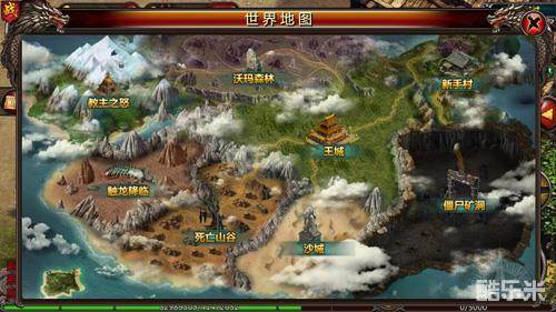 这时只要玩家打开了右上方的地图小图标,可以看到我们所处在的世界,整个世界的布局:新手村,王城,沙巴克,僵尸矿洞,沃玛森林,教主之怒,死亡领域,触龙降临。