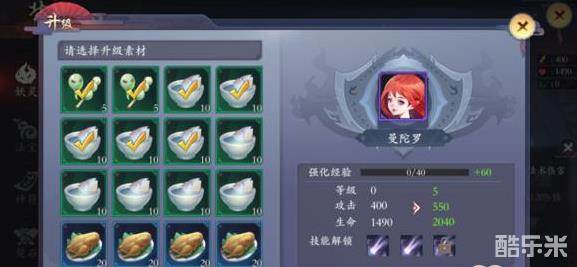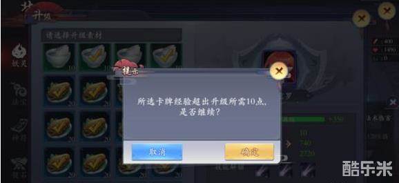 这里需要注意的是,每一种经验道具的右下角,都有一个数字,这个数字代表着该道具能够提升的经验值。有时,我们将妖灵提升至满级,经验会溢出,这个时候我们就可以更换经验值更低的道具使用,以免浪费。