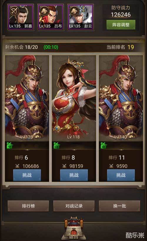 不过,竞技场排行榜实时变动,可谓风云诡谲,需当时刻小心在意,不少主公可是环伺在侧,虎视眈眈!因此不仅挑战阵容要强,防守阵容也应当配备强力武将,以防被其他主公挑下马来取而代之。