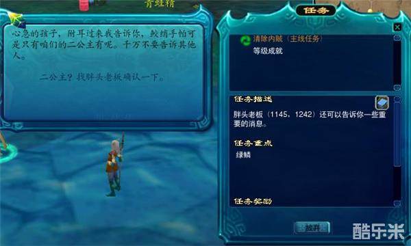 找到蚌太太,蚌太太告诉了我们一个惊人的消息,二公主可能叛变,并让我们找到胖头老板确认一下。