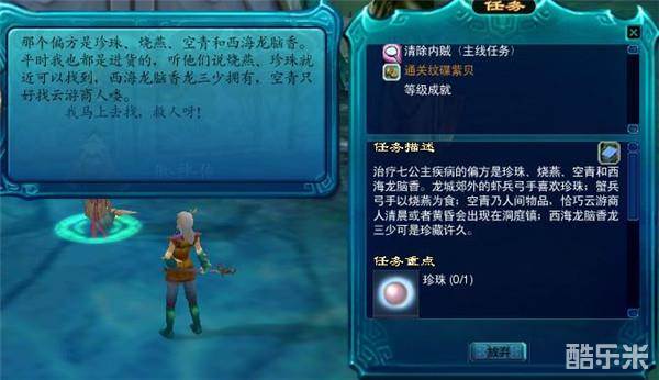 不巧的是,药品原料不足,我们需要收集材料方可。首先我们需要找龙三少拿到西海龙脑香,接着在洞庭镇的云游商人买到空青,然后还需要到龙城郊外击杀怪物拿到珍珠和烧燕。