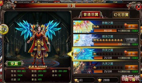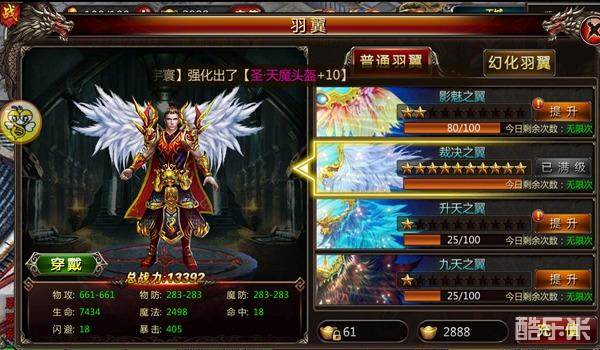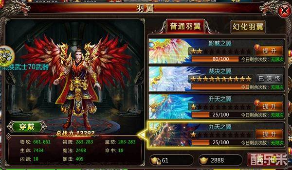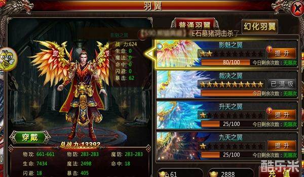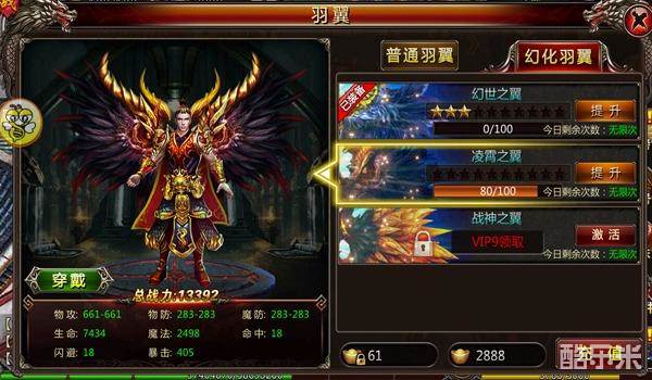 其实九天之翼跟升天之翼差不多,性价比都很高。同属免费翅膀,消耗绑元激活。关键在于热血红色比较好看,增加攻击、魔防、暴击,适合战士前期优先提升。