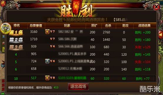 3.打完跨服战后我们会获得战功和荣誉,战功用于兑换物品,荣誉则是用在排行榜中排名。