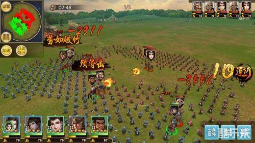 阵法既定,进入游戏后画面右下角会有三个选项,分别是士兵冲锋、武将冲锋和全军冲锋,这个时候就要看玩家的show了。本作中如果武将阵亡,所有的士兵就会消散,所有武将死亡后,战斗就会失败,士兵不会有残留,也无法在武将死亡后左右战局,因此决定好冲锋的次序是一个非常重要的事情,别等到用锋矢阵对付两仪阵,领头大将一股脑冲到人堆里然后挂了才想起来没有进行作战指挥。