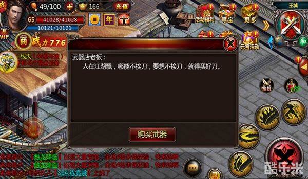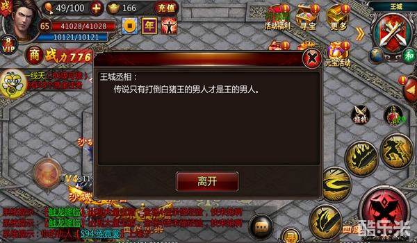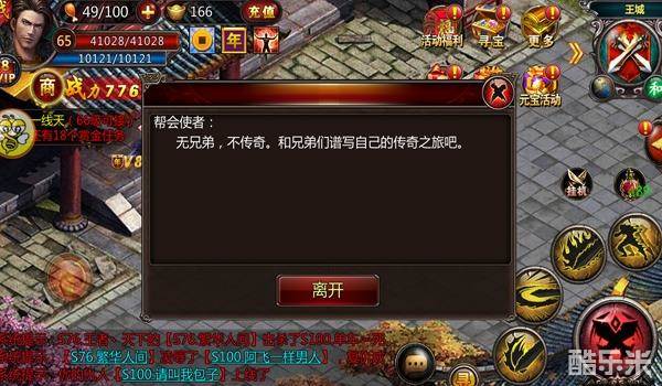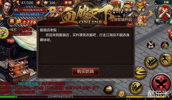 看了《血饮天下》那么多NPC对白后,小编认为最劲爆的还是美女服装店老板跟你说“裸体”的那些事情;最点明游戏中心的对白当属帮会使者说的,“无兄弟,不传奇”,有兄弟在的游戏才好玩。