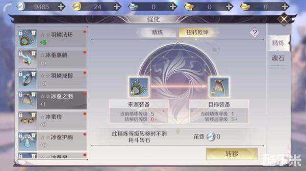 精炼需要用扭转乾坤才能继承的,属性会转移到另外一件装备上,但是需要消耗斗转石和银币,这两个是需要消耗的。装备精炼等级小于等于12级,这个时候不用消耗道具,超过12级之后需要消耗斗转石,转移概率是100%成功的。