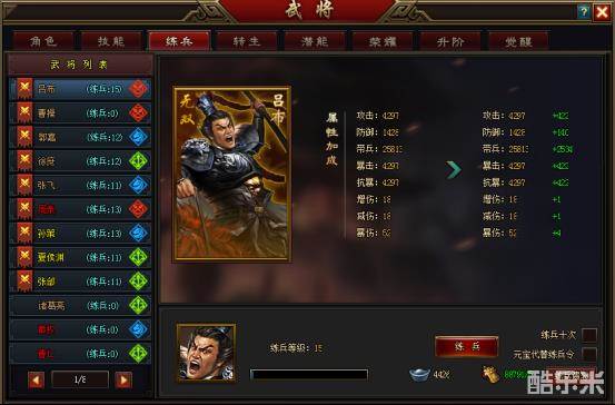 3. 武将练兵:消耗练兵符合银两对武将所带兵种进行属性加成