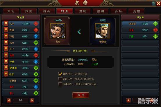 4. 武将转生:可将已培养的武将进行下阵与上阵武将进行资源转换