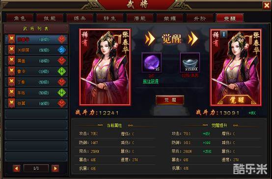 8. 武将觉醒:消耗一定的天命石和银两可对武将进行觉醒,觉醒后武将的属性将会有一定增加