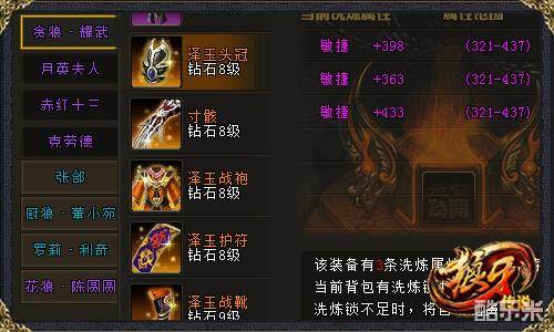 洗练作为刚开不久的一个系统,它可以通过给装备洗练获得额外的属性,而且洗练获得的属性也是有颜色等级之分的,以绿色最次,蓝色其次,紫色,橙色最好这样来划分。因为洗练需要消耗的洗炼锁和铜钱还是不少的,所以很多玩家只要一洗到更高的颜色属性便置之不理了,其实这是不对的一个误区,我们应该只选对的,不选贵的。比如靠敏捷取胜的疾影,给他洗三个蓝色敏捷也比其他橙色属性好,又好比靠闪避吃饭的剑灵,给他洗出闪避可是比其他高等级的属性更好的!