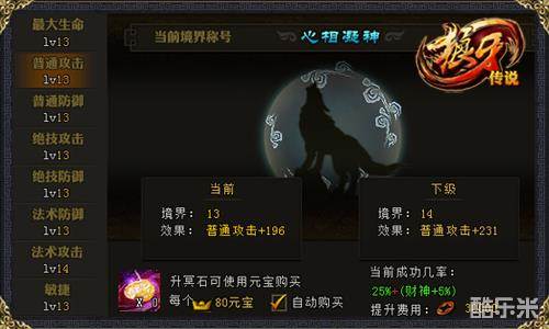 世间存在的丰富的元力,只等你去吸收炼化,从而来强化自己的冥想境界。在《狼牙传说》中,元力可以通过元力丹或者刷副本的奖励获得,主要就是用来点亮棋局,破解一盘棋局后将进入下一局,合计3个棋局。境界的提升需要收集升冥丹,可以通过副本奖励或者占星台、黑市购买获得。这是一个漫长的积累的过程,只有心志坚定,富有韧性和耐性的人才能成就真的大道!