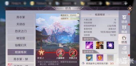 桃源炼狱属于等级较高的修真副本,其最低等级限制为79级,并且修真境界需要达到上仙/狂魔。副本中可以掉落仙魔技能书、A级宠物蛋,并且可以解锁专精。